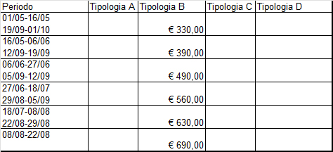 Qui sono indicati i prezzi delle varie tipologie dell’immobile corrispondenti ai diversi periodi stagionali:
